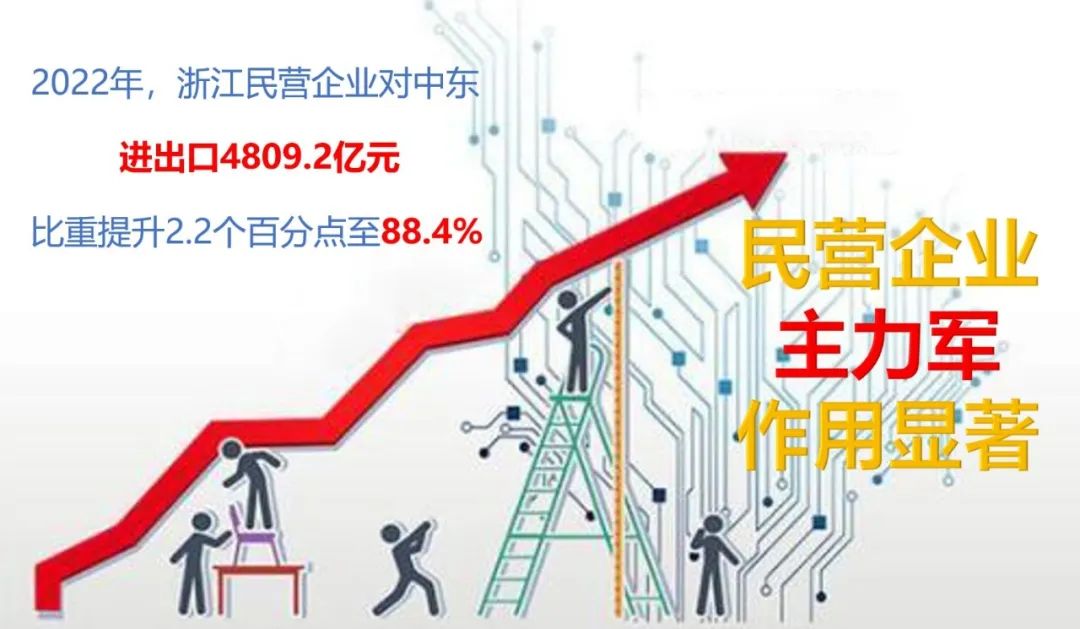 2022年,浙江民营企业对中东进出口4809.2亿元,比重提升2.2个百分点至88.4%,主力军作用显著。