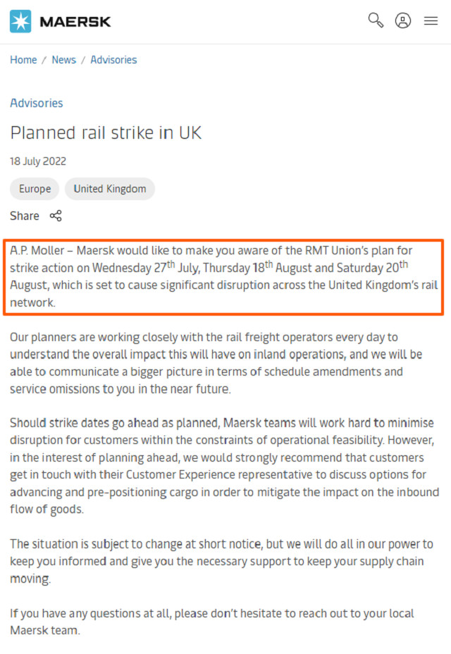 原文:https://www.maersk.com/news/articles/2022/07/18/planned-rail-strike-in-uk