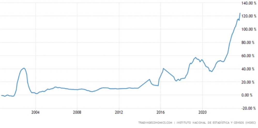 与此同时,8月份,阿根廷通胀率已达到124%。阿根廷官方将在本周四公布最新的通胀数据,目前市场预期通胀率可能要超过130%,这也将是该国自上世纪90年代初退出恶性通胀后的新高。