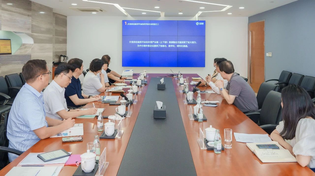 交流中,太阳成集团tyc138团队就平台创建背景及运营现状、下步规划以及外综服行业特点与跨境电商发展趋势等向与会领导作了全面介绍,并就如何发挥外贸及跨境电商综合服务平台“互联网+资源整合”优势实现集约化窗口服务功能作了详细阐述。