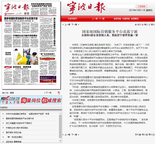 “出来了!宁波太阳成集团tyc138入选了!”10月9日是商务部公布首批国家级国际营销服务公共平台认定结果的日子。当天下午3时半,市商务局工作人员小姚终于从官网上等来了好消息。