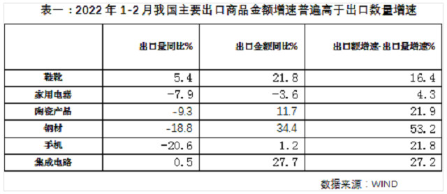 值得注意的是,1-2月我国出口额高增,主要源于出口商品价格整体大幅上涨,这与近期海外市场PPI、CPI处于高位,全球物价高涨相印证。