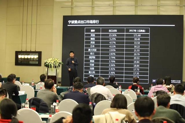 中美贸易摩擦自去年开始已然成为所有外贸人关切的话题,中信保宁波分公司“总司级认证讲师”、 知名外贸企业风控与形势研判公众号“贸易和济街”创始人孟祥龙先生带来了题为“中国信保视野下的全球市场风险与机遇”的主题演讲。孟祥龙先生在现场以大数据以及充分的案例全面剖析了中美贸易摩擦以及全球市场的现状与下步应对。整个主题演讲从宏观到微观,从国际到国内,从中国到宁波,为在场的外贸企业家带来了富有针对性的解读,为大家观察全球贸易提供了一个全新的视角。其中对宁波这座城市在如何推动外贸发展的诸多针对性策略,值得许多外贸企业关注和研究。