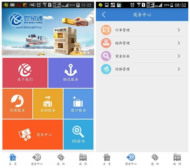 ●商务中心查询:订单管理、快件管理、资金往来以及信保管理。