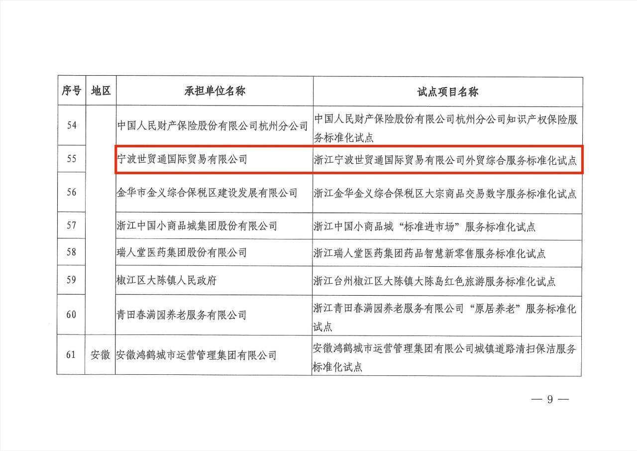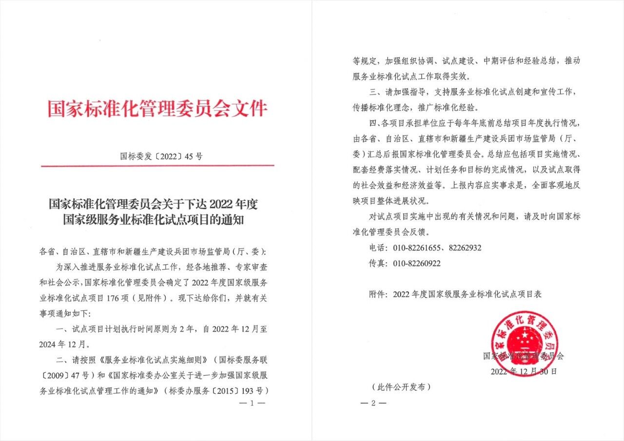 日前,国家标准化管理委员会公布了2022年度国家级服务业标准化试点项目名单,太阳成集团tyc138成功入围,并将在未来2年内承担国家级外贸综合服务标准化试点项目。