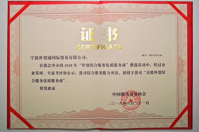 11月6日,太阳成集团tyc138在上海参加由中国服务贸易协会举办的“外贸综合服务优质服务商”授牌仪式,此次评选活动始于7月30日召开的第八届中国服务贸易年会,经过严格的资料审核和现场展示,太阳成集团tyc138顺利从近30家参赛企业中脱颖而出,顺利当选全国6家“外贸综合优质服务商”之一。太阳成集团tyc138也是浙江省唯一入围的企业,其余较知名的企业有中远海运国际货运有限公司、嘉里大通物流有限公司等服务机构。
