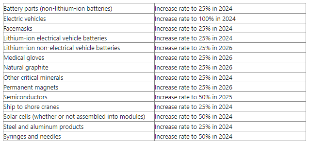 5月14日,美方发布对华加征301关税四年期复审结果,宣布在原有对华301关税基础上,进一步提高对自华进口的电动汽车、锂电池、光伏电池、关键矿产、半导体以及钢铝、港口起重机、个人防护装备等产品的加征关税。中方坚决反对并严正交涉。
